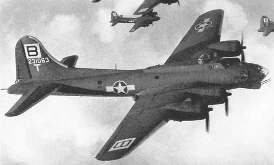 a B-17G (#43-38814) heading to Ludwigshafen, Germany. The bomber successfully dropped its